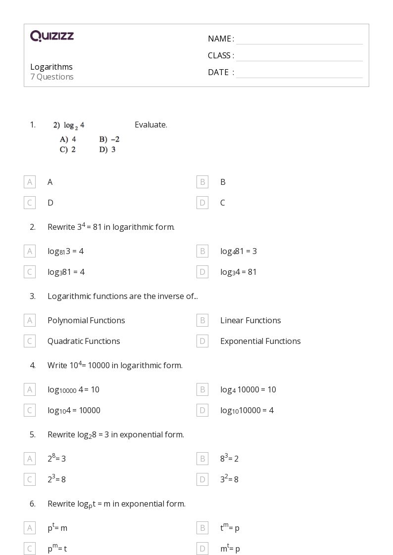 50+ Logarithms worksheets on Quizizz Free & Printable