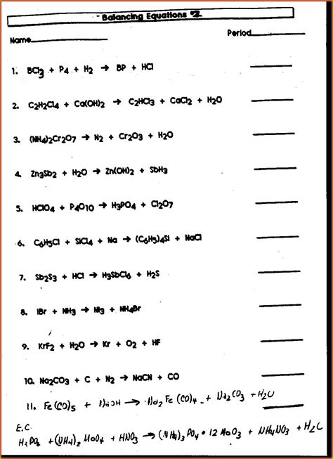 Our balancing chemical equations worksheets with printable guides and practice problems will help you master the skill effectively and efficiently. Write and balance the following chemical equations. Write each completed and balanced equation below. In this example we know the reactant mg3si2o5(oh)4 has a balancing number of 1 so this is our starting point.